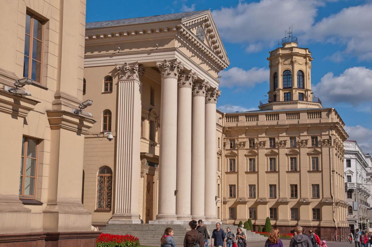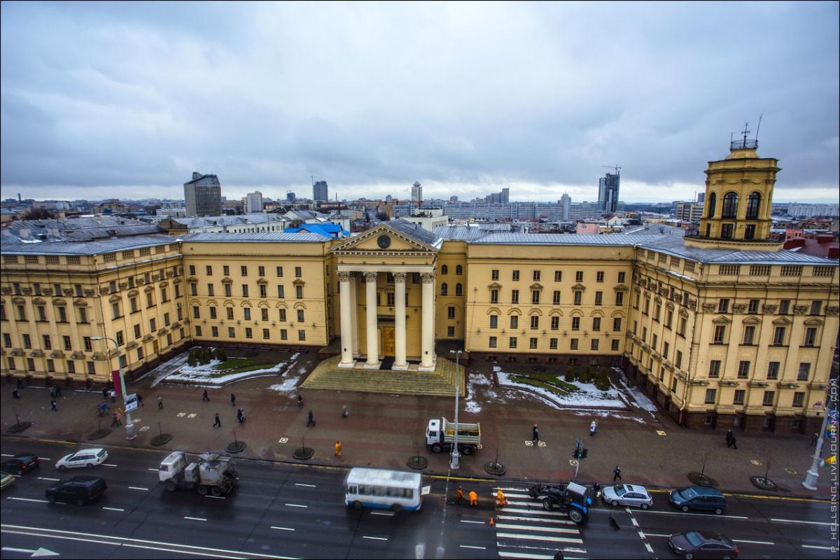 At the end of the war Minsk was in ruins, so the restoration works to improve the appearance of the city began immediately after the war was finished. One of the first buildings constructed at that time was the building of the KGB, which, according to the architects and designers, was supposed to set the overall tone of the architecture of the newly built postwar world.
