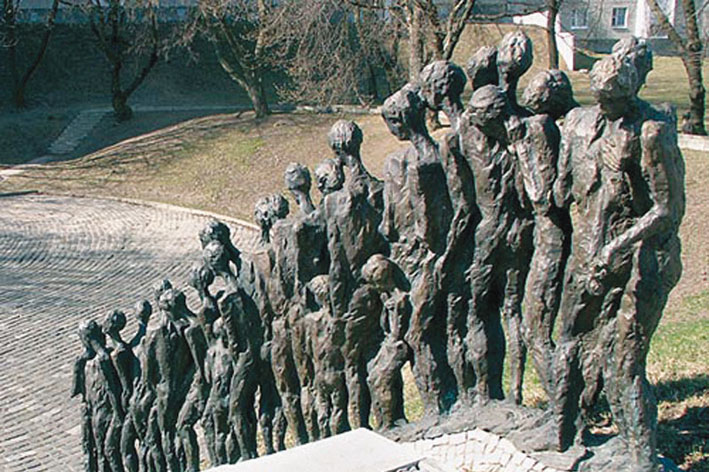 вдоль которых можно увидеть скульптурную композицию —люди, сгоняемые на расстрел.